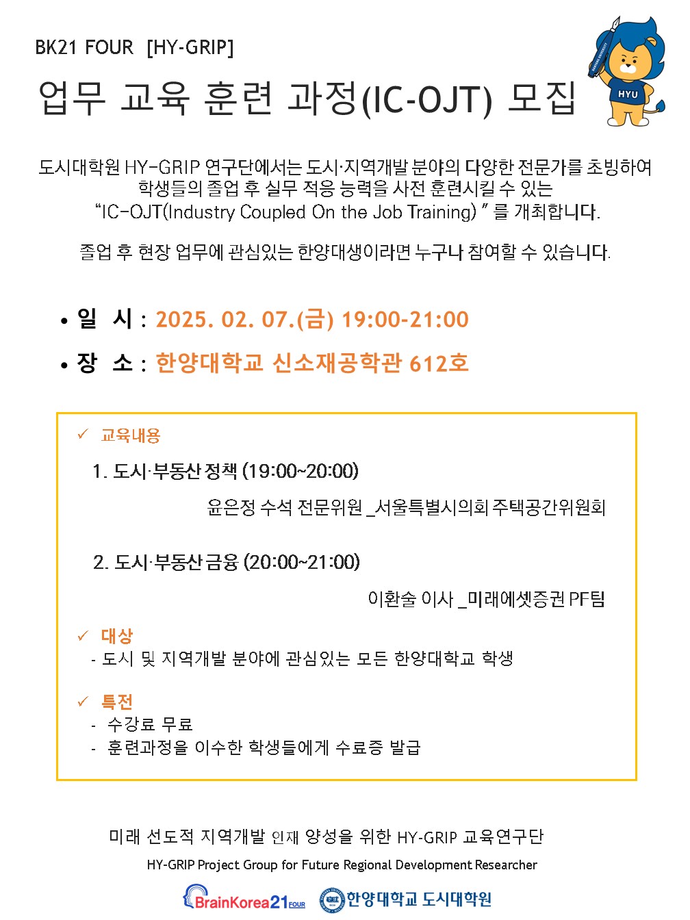 한양대학교 미래 선도적 지역개발 인재 양성을 위한 HY-GRIP 교육연구단