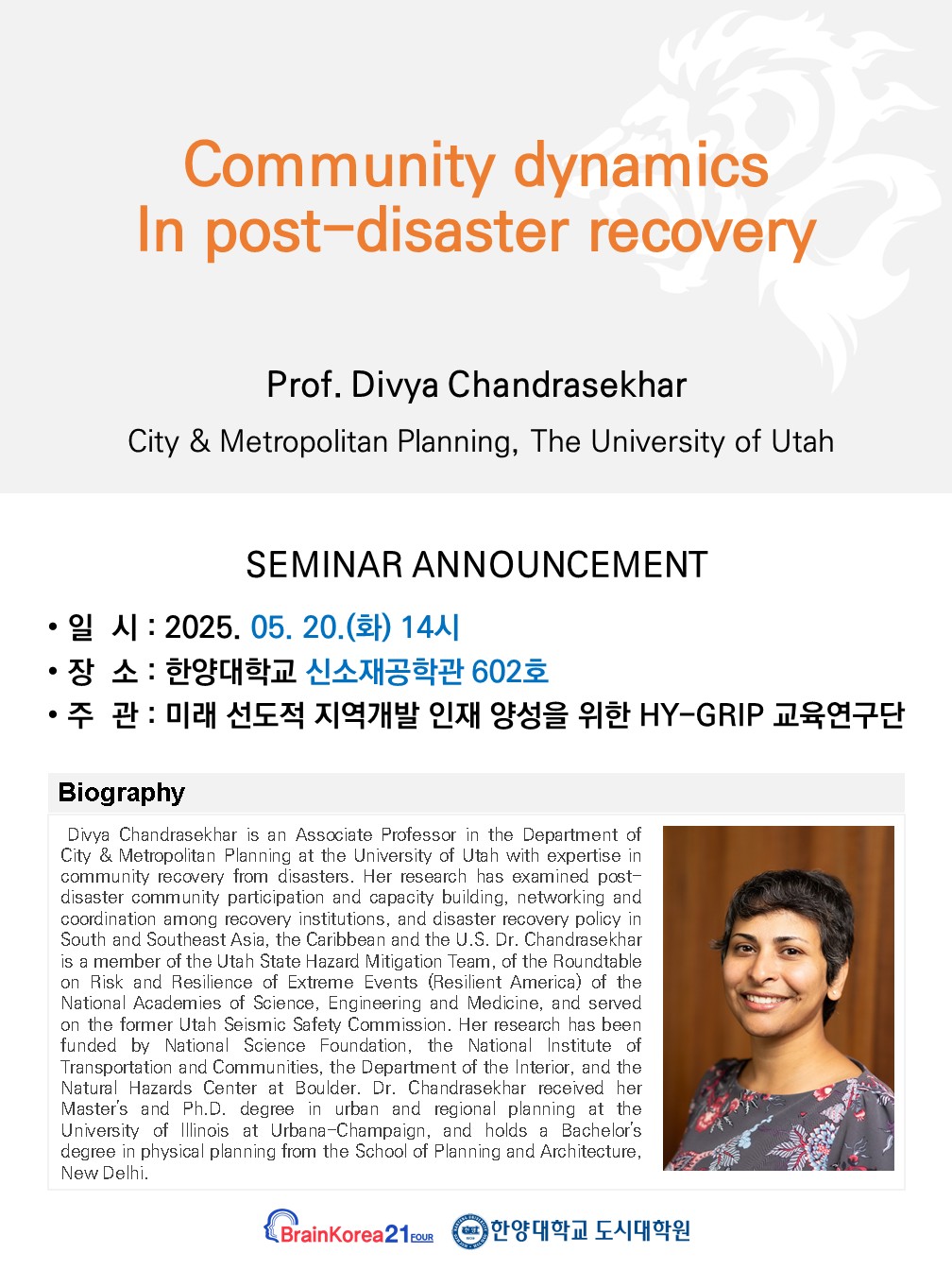 한양대학교 미래 선도적 지역개발 인재 양성을 위한 HY-GRIP 교육연구단
