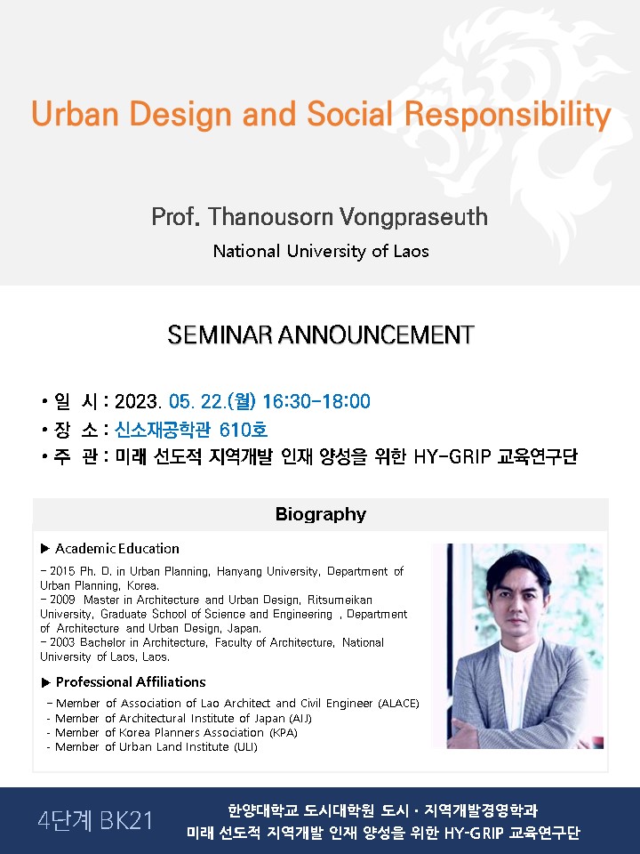 한양대학교 미래 선도적 지역개발 인재 양성을 위한 HY-GRIP 교육연구단